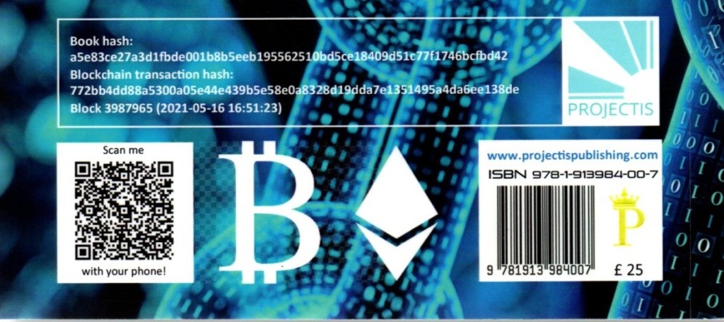 This is not just a book about blockchain, it is a block of the blockchain. Its entire contents have been converted to a hash which is printed on the back cover. De facto demonstrating how blockchain can be used in book publishing to protect intellectual property and create immutable records.